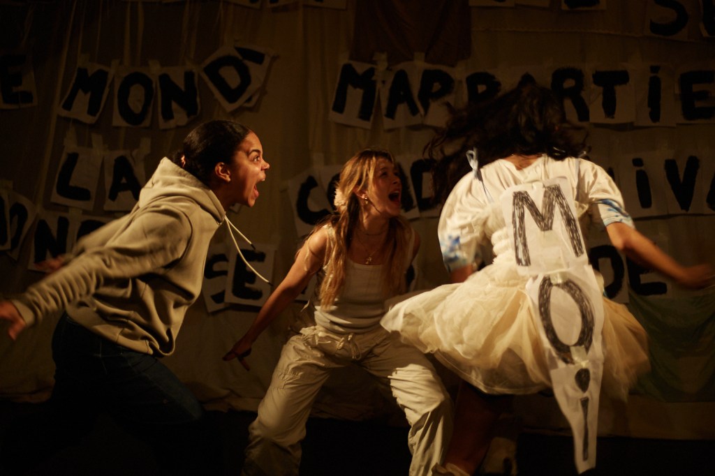 Le premier portait est celui d’Eloïse (Telma Bello), une collégienne harcelée par ses camarades. Nous sommes alors transposés dans une cour de récréation, avec ses cris, son brouhaha de discussions bruyantes, sa sonnerie stridente et surtout ses moqueries. Sur scène, bien que l’on voie deux jeunes filles s’en prendre à la jeune fille, c’est bien toute la classe à qui cette dernière s’adresse.
