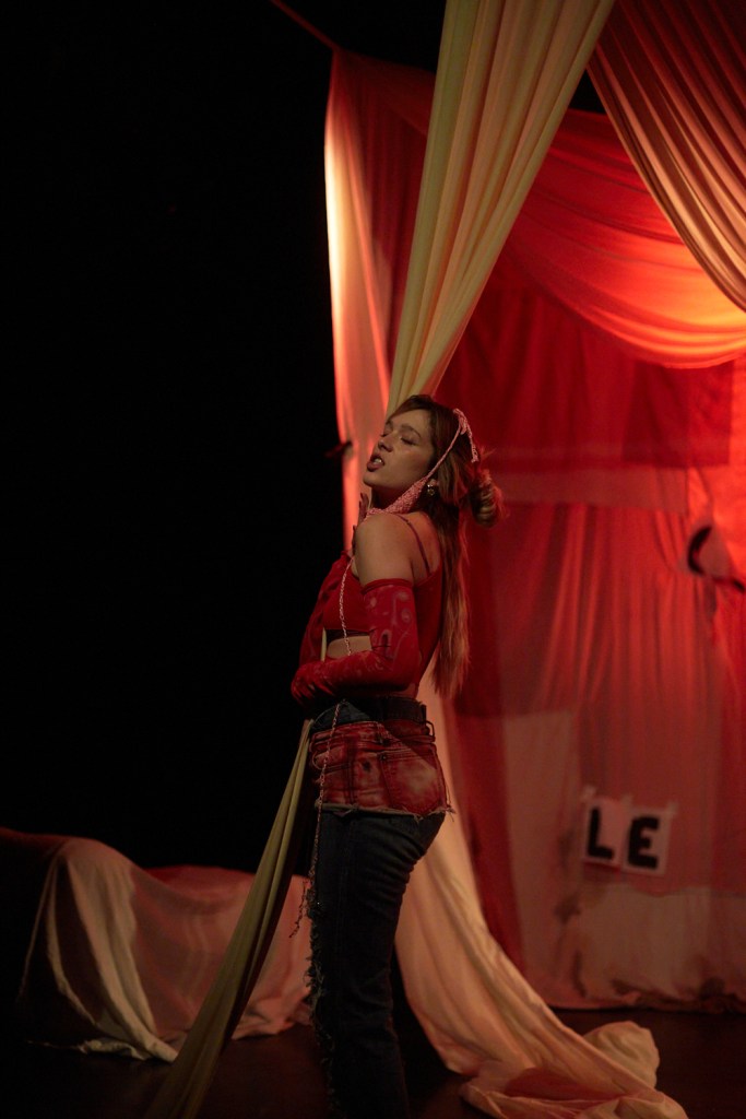 Le portrait de Rouge-Dents montre un personnage qui lutte en permanence contre l’aliénation et interroge le public sur les projections que les autres font sur son personnage. C’est une manière de dire : « Si je suis habillée de cette façon, que je fais ce que vous me demandez ou je parle d’une certaine manière, vous allez projeter des imaginaires sur moi. » Bien qu’elle en joue, elle se retrouve enfermée dans ce carcan, jusqu’à la transcendance finale.