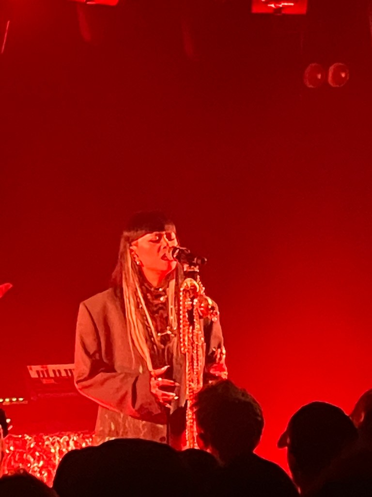 La salle de La Maroquinerie, qui peut accueillir jusqu’à 500 personnes, est désormais pleine à craquer. Le public exulte lorsque Thérèse rentre en scène. Sans plus tarder, elle s’empare du micro, décoré de colliers de perles pour nous parler d’une Sirène, titre dystopique traitant de la prison tragique que sont les réseaux sociaux, issu de son EP « Métareverse ».